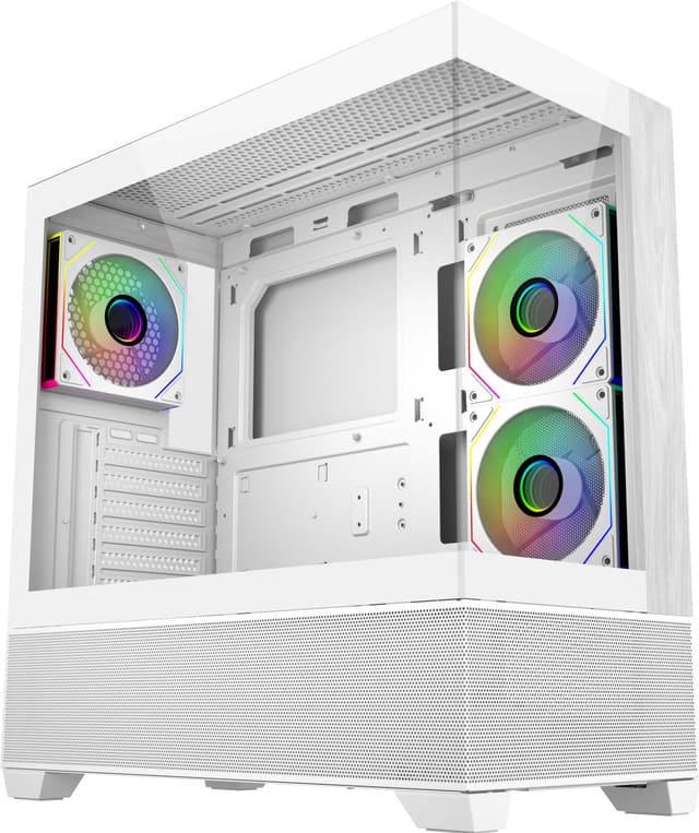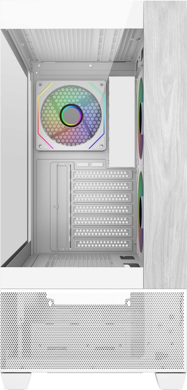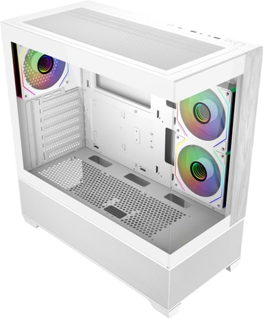 Med 270° hærdede glaspaneler med fuldt udsyn og et sømløst affaset design giver dette kabinet dig mulighed for at fremvise dine premium-komponenter og RGB-belysning med stil. Glaspanelerne giver et klart og fordybende indblik, der gør din build til midtpunktet i ethvert rum.