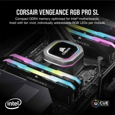 Corsair Vengeance RGB Pro SL DDR4 RAM 32GB (2x16GB) 3200MT/s CL16 tilbyder hurtig ydeevne med 1,35V og nem Intel XMP-opsætning. Dens 10 ARGB LED'er tilføjer levende lys, hvilket gør den til en stilfuld og højtydende opgradering.Læs mere om produktet