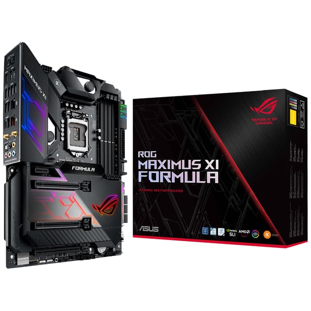 Pro gaming kræver en pro-tilgang. Asus ROG Maximus XI Formula wi-fi-bundkortet lader dig bygge en kraftfuld PC med 9. gen. Intel processor-støtte, adskillige GPUer, massiv afkølingsløsning, nemmere hukommelse overclocking og indbygget wi-fi-ac.Læs mere om produktet