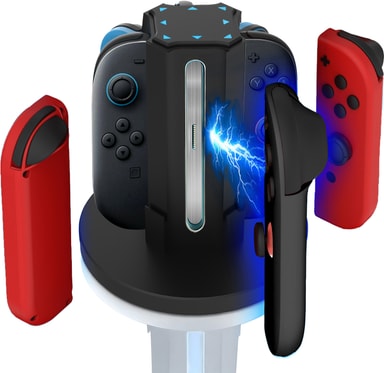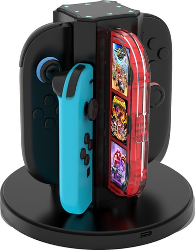 Piranha x GhostGear Nintendo Switch 1/2 Joy-Cons opladeren giver dig mulighed for at oplade 8 Joy-Cons på én gang, har en USB-C til C hurtigopladningsforbindelse, kan opbevare op til 12 spilkassetter og har dobbelte opladningsslots.Læs mere om produktet