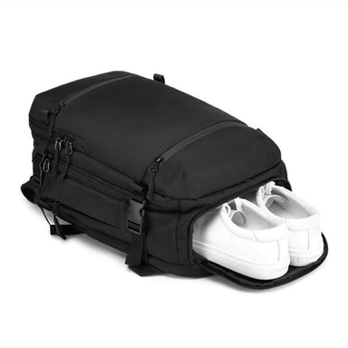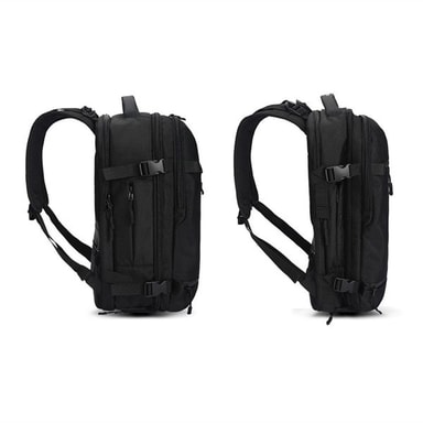 Praktisk og funktionel rejsetaske / karbintaske i rygsæksmodel. Flere lynlåsforsynede rum, polstrede skulderremme samt bærehåndtag. Rygsækken er expanderbar for at kunne rumme mere ved behov. Rummelig, bekvem og smidig at pakke, perfekt til rejsen!- expanderbar- bekvemme polstrede skulderremme- justerbart taljebælte- bæltetaske- lynlåsforsynede rum- slidstærkt, højkvalitativt stofFarve: sortMateriale: Oxford-stof + polyesterforMål (BxHxD): 22 x 51 x 21~31 cm