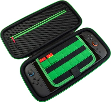 Turtle Beach PlayTrek Donkey Kong Switch 2 etuiet er et officielt licenseret Switch 2 hardcase med et skiftende lentikulært Donkey Kong design. Det har en robust EVA-yderbeklædning, plads til 12 spil og en polstret klap til beskyttelse af skærmen.Læs mere om produktet