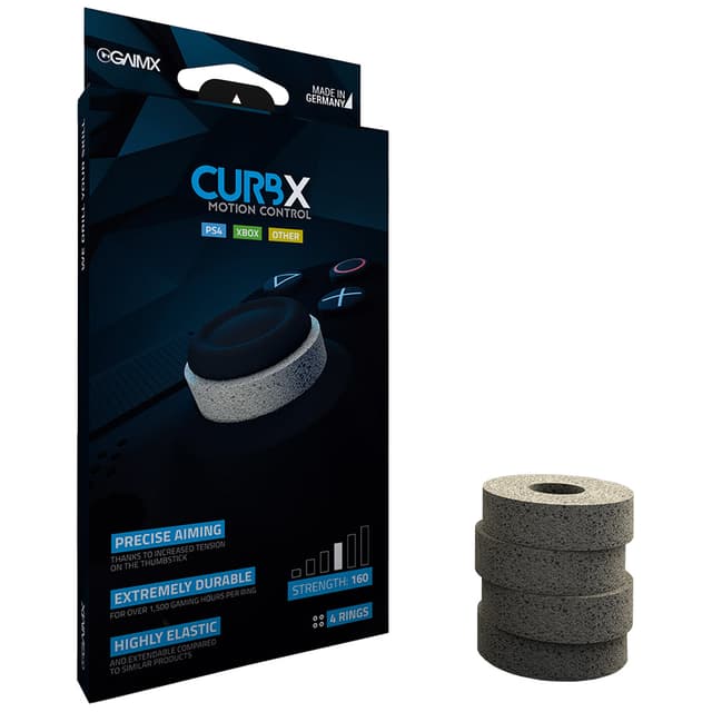 Tilføj mere præcision og fart til dine konsolspil når du nyder et FPS eller TPS spil. GaimX Curbx 160 bevægelseskontrol ringe er lavet af naturlig gummi, der hjælper dig med at sigte bedre og præcisere kontrollen af dine bevægelser. Ideel til spil som f.eks. Call of Duty eller Rainbow Six: Seige. Du vil altid have en optimal modstand der giver dig forhøjet stick-sensitivitet og upgradere dit gameplay.