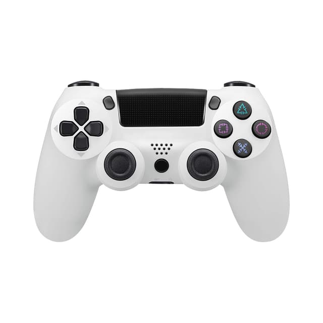 Mange funktioner: Controlleren har en ergonomisk form og giver dig et godt greb og føles behageligt i hånden. Funktioner som baggrundsbelysning, dobbelt vibration, dobbelt stød, TouchPAD og lydhøjttalere forbedrer spiloplevelsen og svarer til den originale PS4-controller. Med 3,5 mm hovedtelefonstik.