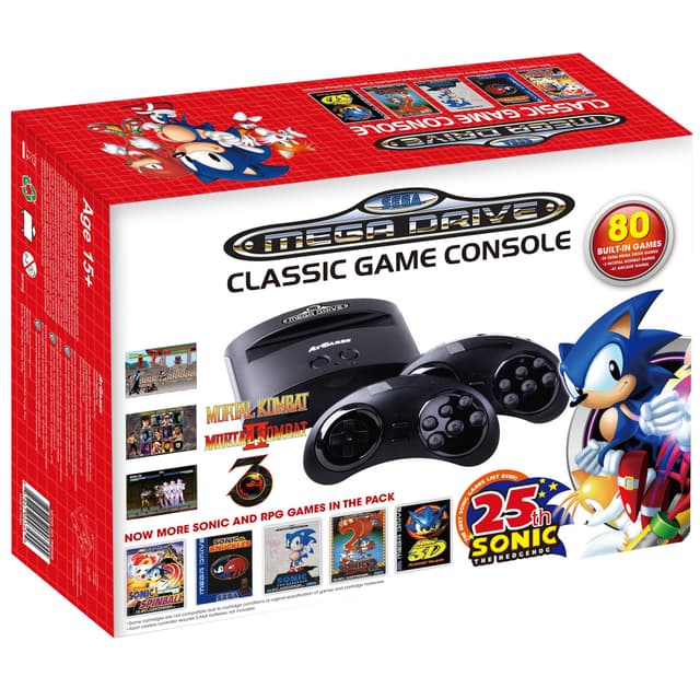 Spil tidsløse klassikere inklusiv Sonic og Mortal Kombat-spil med Sega Mega Drive Classic spillekonsollen. Konsollen medfølges af to trådløse controllere og understøtter originale Mega Drive kassetter.Læs mere om produktet