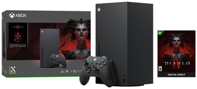 Denne konsolpakke indeholder en kraftfuld Xbox Series X-konsol, en trådløs Xbox Wireless-controller og Diablo IV.