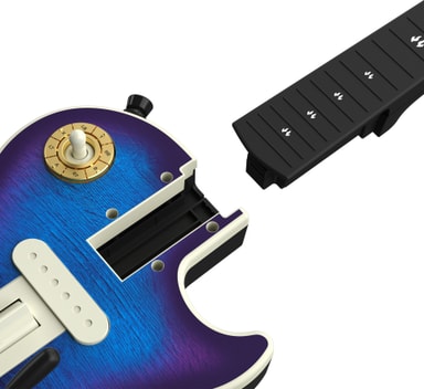 Denne guitar har en udskiftelig hals, der giver mulighed for hardwareopgraderinger. Den integrerer et navigationshub med to analoge sticks og en skjult D-pad i hovedet, plus reaktiv RGB-belysning og en tekstureret, premium finish.