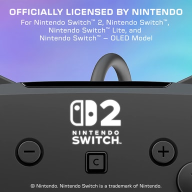 Denne controller er officielt licenseret med fremadrettet og bagudrettet kompatibilitet. Den fungerer problemfrit med Nintendo Switch 2, original Switch, OLED- og Lite-modeller.