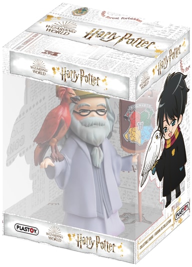 Plastoy Harry Potter figuren forestiller den kloge og magtfulde rektor på Hogwarts, Albus Dumbledore, sammen med sin loyale føniks, Fawkes.Læs mere om produktet
