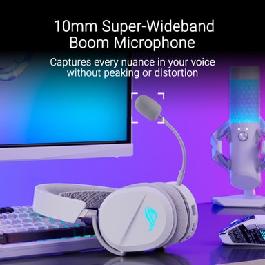 Skift mellem forskellige tilstande for den perfekte balance mellem ydeevne og fleksibilitet, takket være dette headsets tre tilslutningsmuligheder. Headsettet tilbyder alsidig forbindelse med Bluetooth for trådløs bekvemmelighed, ultra-lav latens 2,4 GHz med ROG SpeedNova-teknologi til spil uden forsinkelse, og en USB-C-kabelforbindelse for stabil lyd i høj kvalitet.