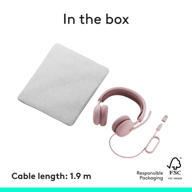 Dette headset tilbyder alsidig plug-and-play-tilslutning via dets USB-C-stik. Det inkluderer også en USB-A-adapter til ældre enheder. Det 1,9 m lange flettede USB-C-kabel giver masser af plads til at bevæge dig rundt ved skrivebordet, samtidig med at forbindelsen forbliver stabil.