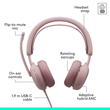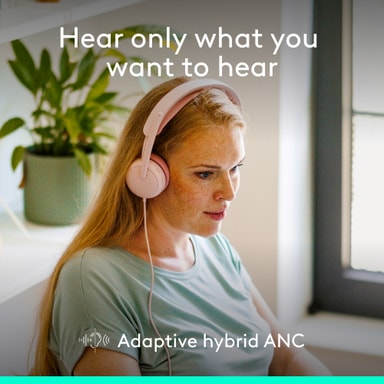 Dette headset har Adaptiv Hybrid Active Noise Cancellation (ANC). Denne teknologi overvåger dit miljø i realtid for digitalt at blokere forstyrrelser som baggrundssnak eller blæsere, hvilket hjælper dig med at bevare fokus i støjende personlige eller delte rum.