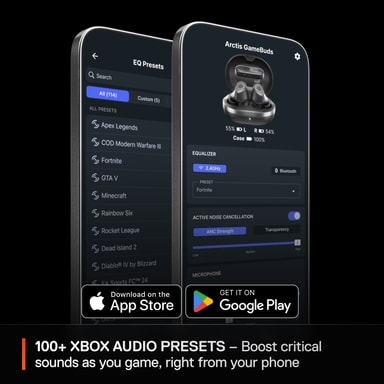 SteelSeries Arctis GameBuds høretelefonerne hjælper dig med at besejredine modstandere. Den aktive støjreduktion sammen med Sonar Surround-lyd og Microsoft Spatial til Xbox giver dig bedre orientering på slagmarken, mens neodym-driverne sikrer sprød og fuld lydkvalitet. Tag EarBuds med overalt takket være deres IP55-konstruktion, og brug dem i 10 timer eller op til 40 timer med opladningsetuiet. Udnyt ubegrænset tilpasningspotentiale med SteelArctis Companion-appen, og finjuster din EQ eller download over 100 forudindstillinger.