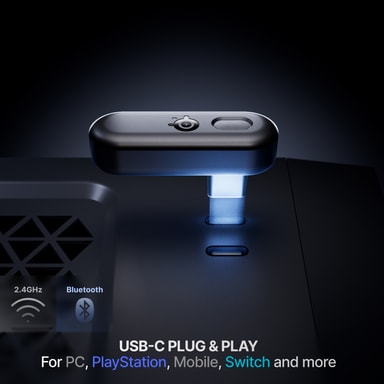 Den pålidelige 2,4 GHz USB-C L-formede trådløse dongle giver en lav-latency lydoplevelse, som er essentiel til gaming på PC, Xbox, Switch og mobil. Disse hovedtelefoner understøtter også Bluetooth 5.3-forbindelse.