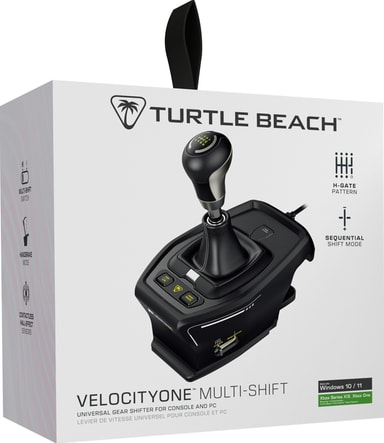 Nyd premium racing med Turtle Beach VelocityOne™ Multi-Shift gearskifte og håndbremsemodul med 7 gear og et bakgear, sekventiel mode shift, håndbremse mode, high & low range gear button og meget mere.Læs mere om produktet