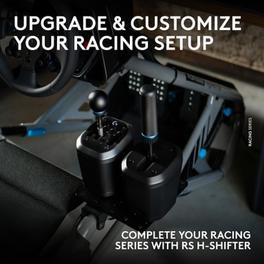 Logitech G RS H-gearstangen giver en medrivende 7-trins manuel følelse med mekanisk præcision. Den anvender kontaktløse Hall Effect-sensorer for lang levetid, en Push-Through Lockout for gearskiftepræcision og tillader forlængelse af stangen samt udskiftelige håndtag til enhver rig.