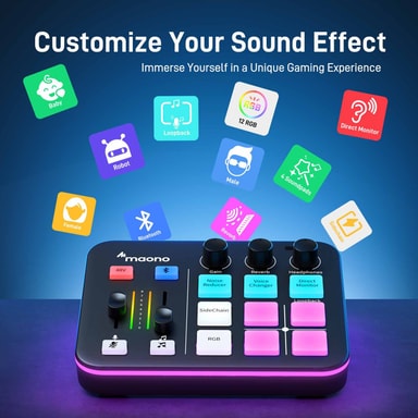 Maono G1 NEO har 4 tilpasselige lydpads, der giver dig mulighed for at tilføje effekter, jingles eller samples for at gøre dine optagelser og streams mere sjove og engagerende.