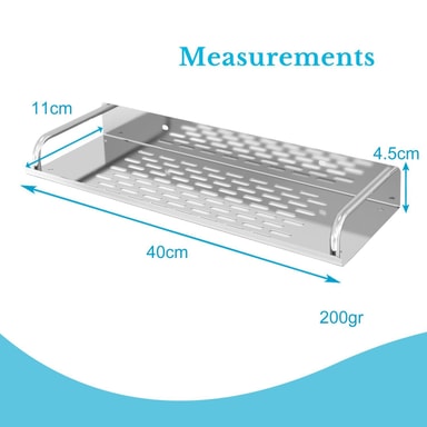 Dimensioner på brusehylden: 40 x 13 cm