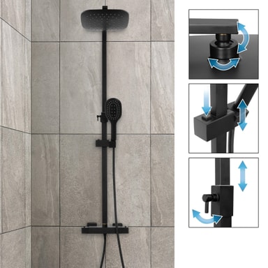 Nyd et behageligt brusebad med vores moderne brusebad fra ECD Germany. Designet af rustfrit stål garanterer en lang levetid og har et super fleksibelt design, så du kan tilpasse svingene og højden af ??håndbruser til dine ønsker. Den store og komfortable overhead bruser og håndbruser er nemme at rengøre takket være antikke jetfly. Derudover kan du indstille vinklen på regnskøjhovedet til den ønskede retning for bedre kontrol af vandstrømmen.