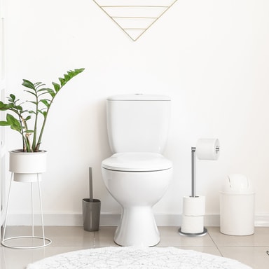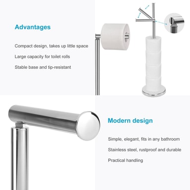 Du behøver ikke at bore huller i fliserne med denne praktiske, fritstående holder. Det tidløse, blanke design gør den til et blikfang på ethvert badeværelse eller toilet.