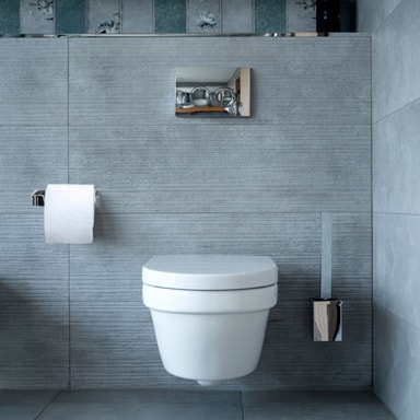 FUNKTION: Toiletrulleholderen bores ganske enkelt ind med de medfølgende skruer. Det har den fordel, at den i modsætning til selvklæbende holdere sidder 100 % fast og ikke kan falde af!