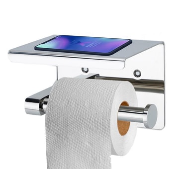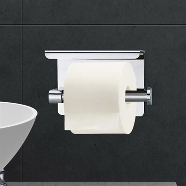 Hylden er det ideelle sted til din mobiltelefon, en pakke vådservietter eller andre toiletsager. Få glæde af denne moderne og praktiske toiletrulleholder!