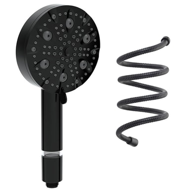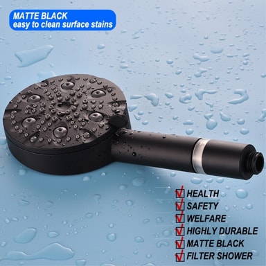 Vandbesparende 10 positioner Håndholdt filterbrusehoved med rustfri stålslange, mat sort