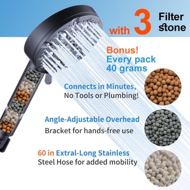 Vandbesparende 10 positioner Håndholdt filterbrusehoved med rustfri stålslange, mat sortAlsidige 9 brusetilstande: Tilbyder ni distinkte sprayindstillinger, inklusive skylning, regn, spray og mere, så du kan tilpasse din bruseoplevelse, så den passerLæs mere om produktet