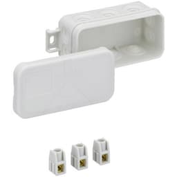 Tilslutningsdåse iht. DIN EN 60670 VDE 0606), 10 indgange og 2 indgange i bunden, egnet til trange installationsomgivelser som ophængte lofter og kabelkanaler, komplet med hulværktøj og afspærringspropper, med udvendigt påskruede fastgørelsessteder,Læs mere om produktet