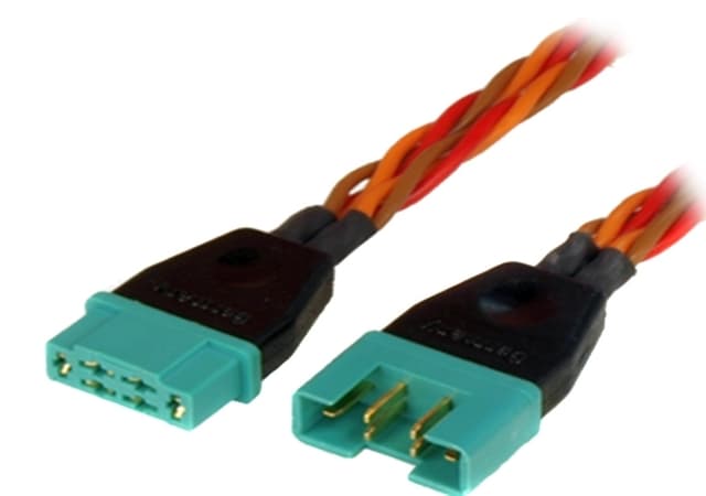 Multiplexkontakter med ferdig påloddet tvunnede 30cm ledninger. PS! Dette er ikke en ferdig forlenger, men separat han- og hunnkontakter hver med 30cm ferdig ledning.