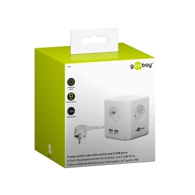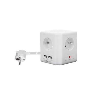 Smart 4-vejs grenudtag i kubeform, med dobbelte USB-udtag for opladning med 1,5 meter tilslutningskabel