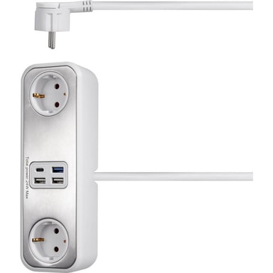 Strømforsyning møder design Sygonix strømskinne med smart design-frontblænde i rustfrit stål-look og forøget berøringsbeskyttelse kan med sine to jordede stikdåser, tre USB-A-tilslutninger og en USB-C-tilslutning anvendes som bordfordeler og Prima.Læs mere om produktet