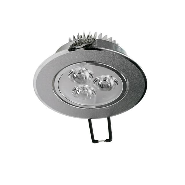 Teknisk information : Lysoutput: omkring 214 lumens Svarende til Halogen: 25W Strøm: 3W Udskæring: mm 65 Dybde: 33 mm Vægt: ca. 76g Dimensioner på lampen: Ø ca. 82 mm Drejeligt: ??30 ° Farve montering: Sølv Vinkel: 120 ° Materiale: Aluminium Energiklasse: A Driftsspænding: 220-240 volt AC Gennemsnitlig levetid: op til 10.000 timer Farve: Varm hvid 3000K Kan lysdæmpes: Nej IP bedømmelse: IP44