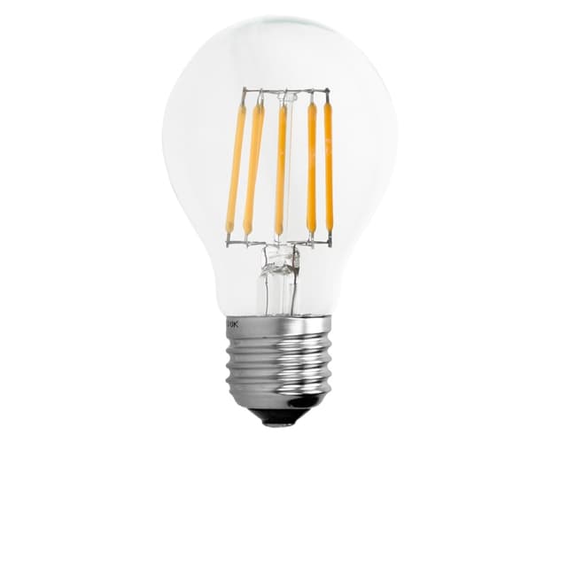 Teknisk information: Fabrikat / Model: E27 10W LED Fatning: E27 LED type: LED glødetråd Vinkel 120 ° Strømforbrug: 10 kWh / 1000H Energiklasse: A + Drift spænding: AC 220-240V / 50-60Hz Farve temperatur: 2800K Strømforbrug 10 watt Sammenligning: 10 W svarer til ca. 50W (pære) Drift: -20 ° C - + 50 ° C Lysstyrke: 1085 lumen Lysfarve: varm hvid Diameter: 60 mm . Længde herunder basen: ca. 105 mm Livet i timer: 50.000 t .Skifte cyklusser: 20.000 Strøm: 240mA Leveringstid: 0,1 s = 100% Ingen forsinkelse - Instant 100% lysstyrke Farvegengivelse: Ra 80 Hydragyrum: 0 g Hg / kviksølv Kan lysdæmpes: Nej Materiale: Krop: glas, bund: metal
