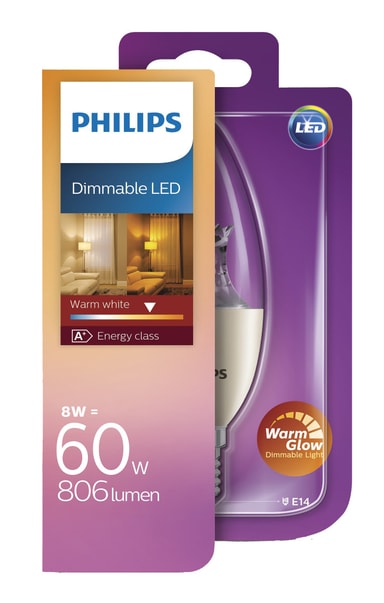 Sikr dig, at dit hjem får den bedste belysning med denne Philips LED WarmGlow lyspære 8718696555972. Den dæmpbare, spidsformede lyspære giver dig muligheden for at justere intensiteten efter dit behov.Læs mere om produktet
