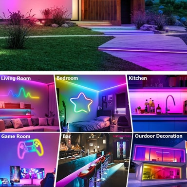 20M RGB Neon LED strip lys med fjernbetjening og Bluetooth-styring. IP67 vandtæt, silikonemateriale, 24V udgang. Perfekt til indendørs/udendørs indretning, musiksynkronisering og gør-det-selv projekter. Skab levende lyseffekter med lethed.Læs mere om produktet