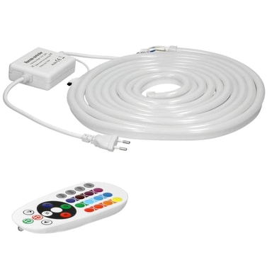 Leveringsomfang: 1 x LED Neon bar 5m RGB 1 x LED controller 1 x Fjernbetjening 24 taster Tekniske specifikationer: Model RGB LED Neon Størrelse: 12 x 20 mm Driftsspænding: 230V LED type: SMD LED-chip: 5050 Antal lysdioder: / m 60 lLæs mere om produktet