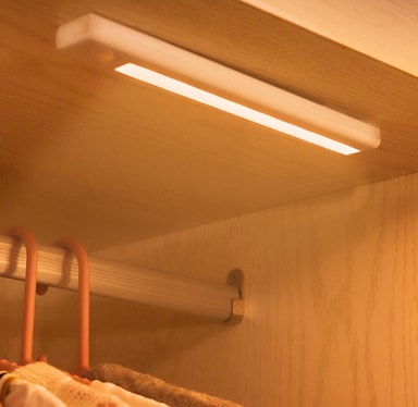 Takket være en indbygget sensor af høj kvalitet kan LED-lysbjælken registrere bevægelse og tænde præcis, når du har brug for lys. Giver et stærkt lys, perfekt til trange rum og mørke hjørner, såsom garderobeskabe, skabe, hylder, opbevaringsrum, trapper og meget mere. Enkel montering med den medfølgende dobbeltklæbende tape. Drevet af 4 AAA batterier.