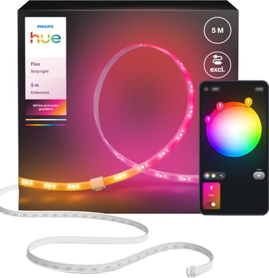 Philips Hue Flux lysstribe-forlænger lyser rummet op med levende LED-farver, understøtter Alexa via Zigbee og fungerer med Hue-appen. Chromasync-teknologien leverer en blød og jævn farveblanding hen over lysstrimlen.Læs mere om produktet
