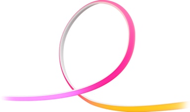 Philips Hue OmniGlow lysstriben har et slankt, fleksibelt design, der nemt bøjes rundt om møbler, hylder og kanter. Dens diffuse finish leverer blød, jævn belysning uden hårde hotspots, hvilket gør den ideel til diskret accent- og stemningsbelysning i ethvert rum.