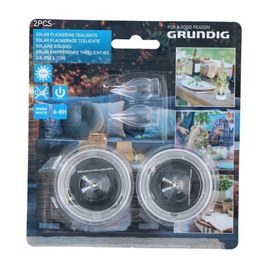 Stilfulde fyrfadslys drevet af solenergi. Solcellebatterierne oplades i løbet af dagen og lyser, så snart solen går ned. Et dejligt lys at have på bordet om aftenen for at skabe en hyggelig stemning. Sælges i 2-pak.