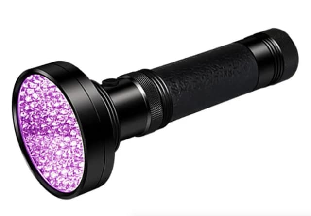 Metallommelygte med 100 UV LED-dioder.