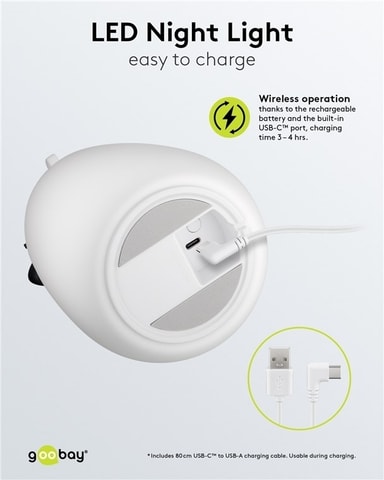Goobay LED-vågelampe ""Isbjørn"" varmt hvidt lys og 7 skiftende farver (RGB-lys), med 3 lystilstande, berøringssensor og Li-ion-batteri (3,7 V/1200 mAh), fremstillet af blød silikone