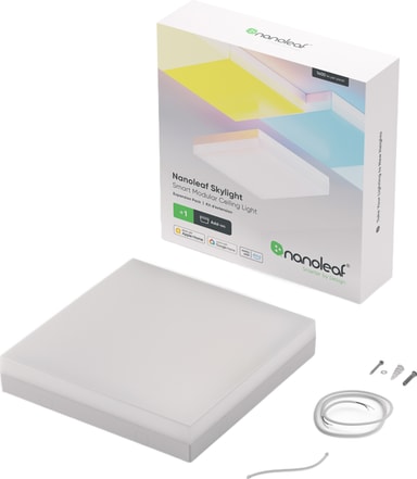 Denne 24-watt Nanoleaf Skylight loftslampe NF083E00-1SL har et moderne design, som lader dig forbinde op til 100 firkanter og skabe din egen opsætning. Betjen det via Nanoleaf-appen og synkroniser det med Apple Home, SmartThings eller Google Assistant.Læs mere om produktet