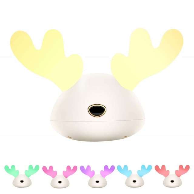 Nem kontrol: Tryk på næsen for at tænde lampen, og tryk derefter yderligere for at skifte til et dæmpet varmt lys, der er blidt for børnenes øjne. Børnelampen kan også skinne i forskellige farver eller i en favoritfarve.