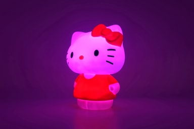 Teknofun Hello Kitty Light-Up figuren med Hello Kitty giver en blød belysning, der er ideel til stemningslys. Den er batteri- eller USB-drevet, har 2 belysningsfunktioner og fungerer både som dekorativ figur og natlampe for fans.Læs mere om produktet
