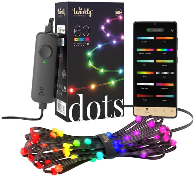 Twinkly LED RGB lyset TWD060STP-B lyser dit hjem eller en fest op på en sjov og stemningsfuld måde. Vælg mellem 16 mil. RGB-farver og et utal af tilstande, tilpas alt via en mobilapp og betjen via stemmestyring.Læs mere om produktet