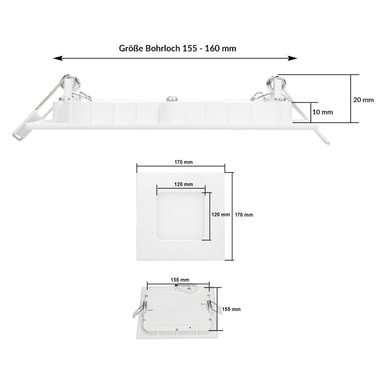 Den forsænkede lys LED med 12W er en ultra-tynd loftsplade lamper af typen SMD 2835. Den eksisterende aluminium Armaturet har en hvid, subtil montering. Perfekt til en stilfuld accent dit hjem ved neutral hvid glødende lyse pletter. - 3 x LED panel 12W Square - LED Type: SMD 2835 - farve: køle hvid 4000K - lyseffekt: omkring 723 lumen og 65W halogen - Driftsspænding: 220 - 240 volt AC - diameter på lampen ca 170x170x20 mm - højden af ??lampen: ca 20mm - Skæring: ca 155 x 155 mm - Dybde: 20 mm - levetid: op til 10.000 h .- montering: Aluminium hvid - ikke dæmpbar - Energieffektivitet: A - IP-bedømmelse: IP44 - Packing størrelse: B = cm 21,5 | H = 3 cm | L = 18,5 cm Bestil nu det hotteste form for loft belysning: LED forsænket lys ECD Germany!