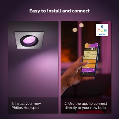 Løft stemningen i dit hjem med dette Philips Hue Centura indbyggede firkantede spotlys. Denne alsidige belysning tilbyder både hvidt og farvet lys, en dæmpningsfunktion og nem Bluetooth-betjening, alt sammen lige ved hånden.Læs mere om produktet