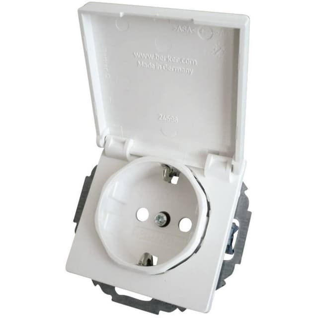 Indsats Jordet stikdåse med klapdæksel 47446089 Berker Q.3, Q.1 Polarhvid 1 stk